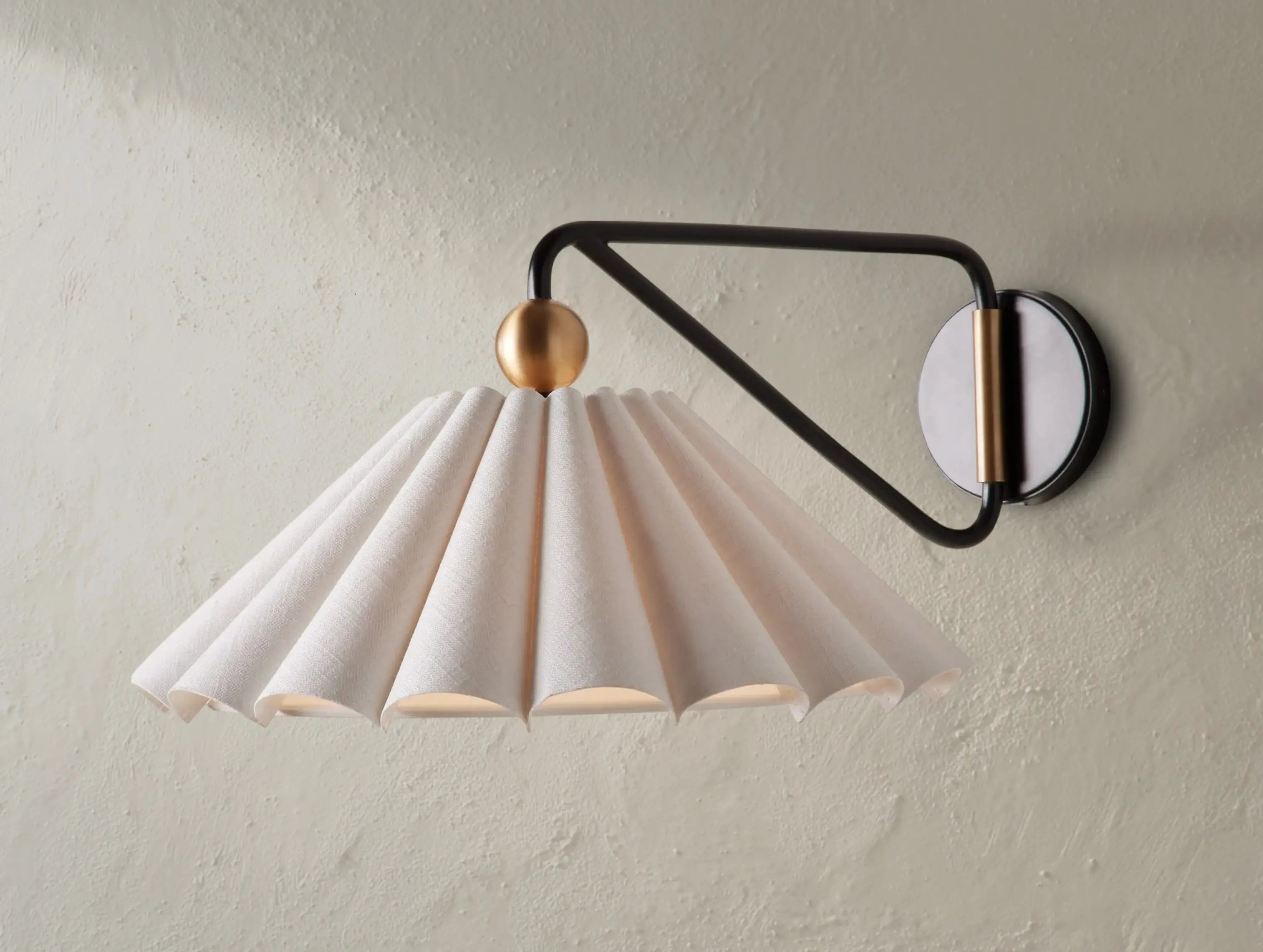 With its warm antique brass finish and pleated natural linen shade, the Hylen Sconce blends classic detail with modern function. The swing-arm design allows you to cast a soft, focused glow where you need it most—whether beside the bed, next to a sofa, or in a cozy reading nook.