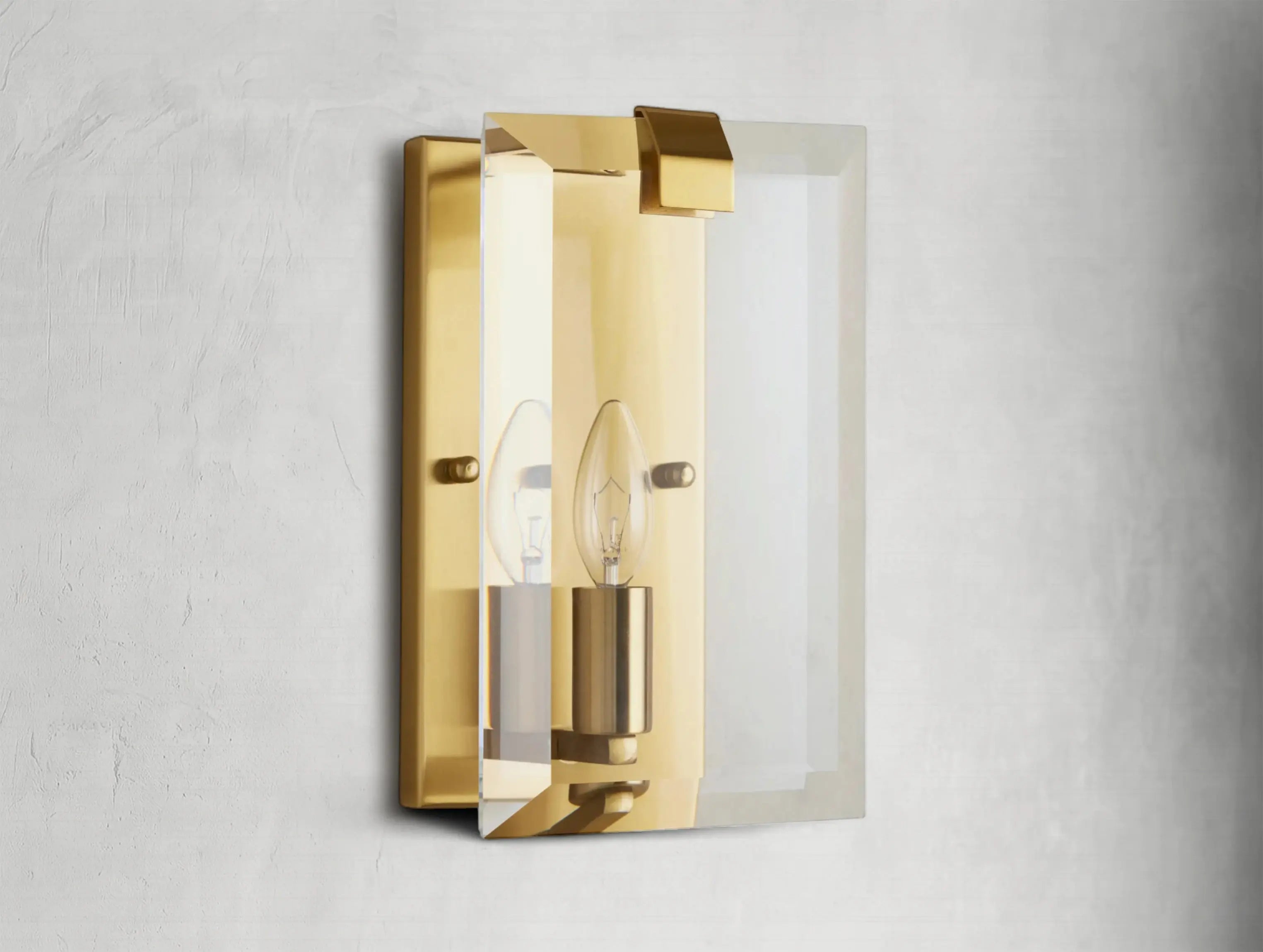 Sleek and sculptural, the Kamaya Sconce from our Amaya Collection pairs thick clear crystal with a bold black or warm brass-plated frame. Designed to bring both brilliance and refinement to hallways, dining areas, or even bathroom spaces, this wall light makes a striking impression—whether lit or not.
