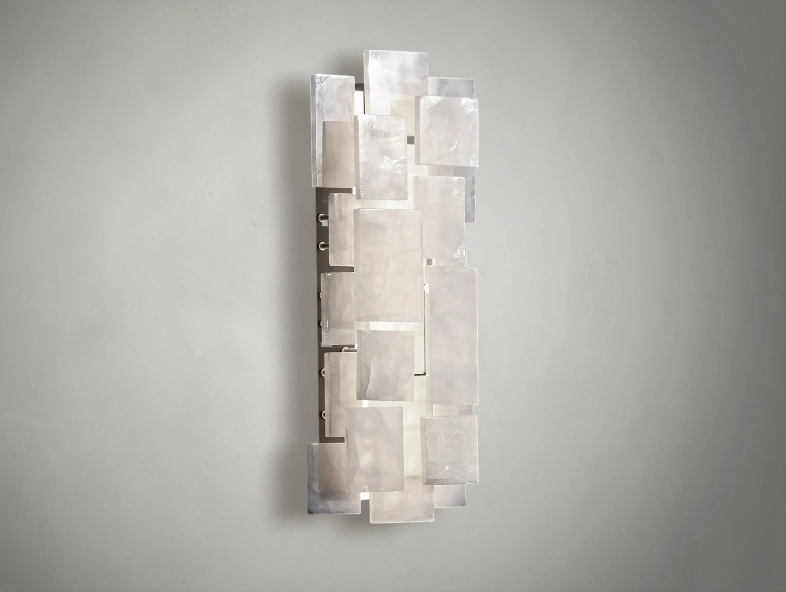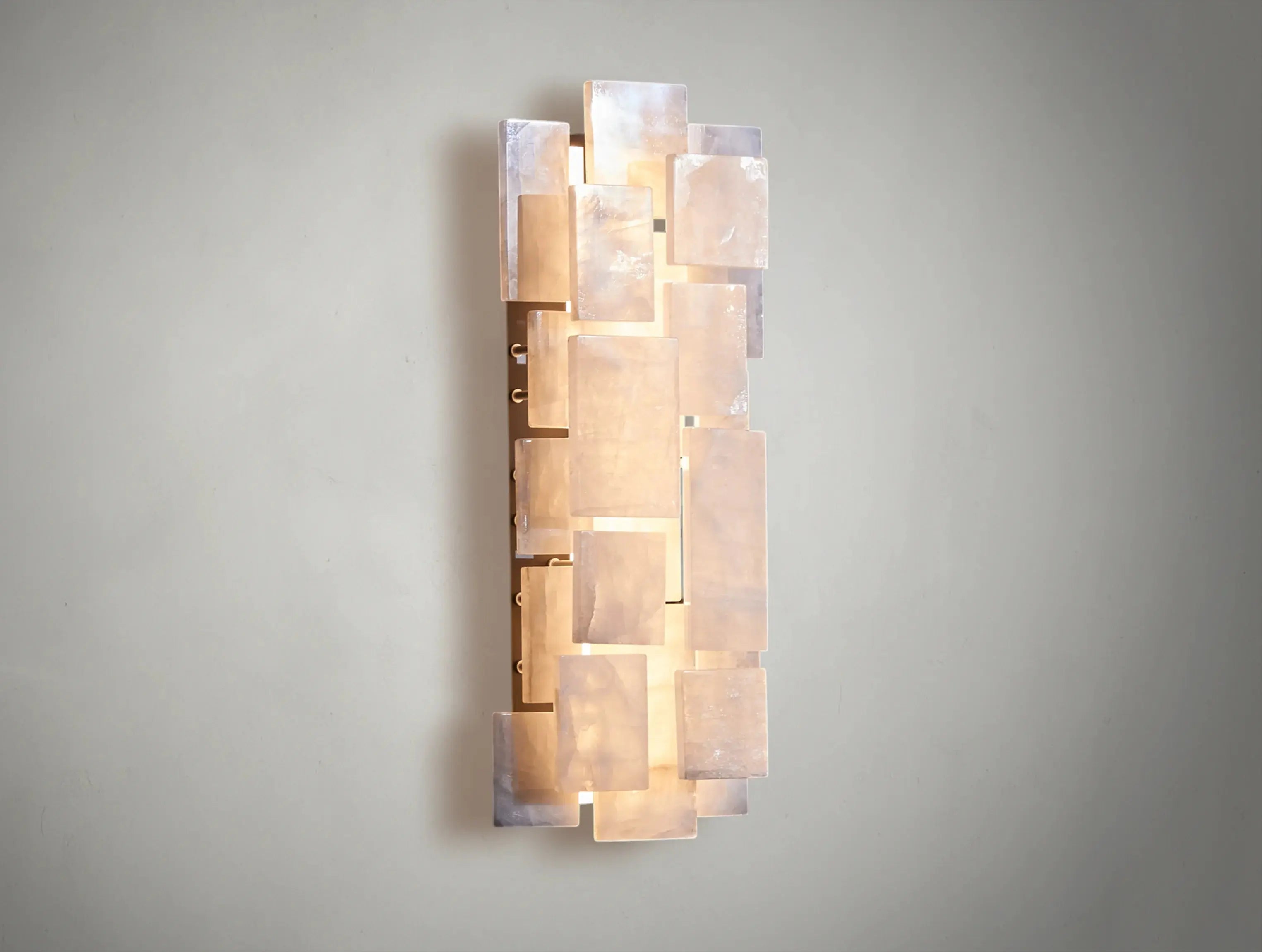 Crafted from natural calcite crystal in our signature Pearly Quartz finish, the Lustra Sconce glows with quiet radiance. More opaque and milky than traditional quartz, each calcite piece reveals subtle mineral veining—casting a soft, tranquil light that feels timeless and grounding.