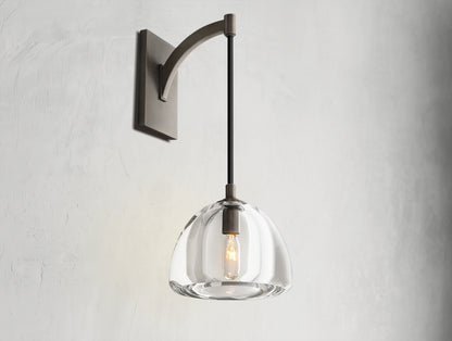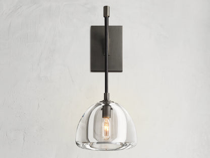 Crystal, carved like sculpture. The Mushcloud Sconce showcases a thick dome of solid crystal, lathe-turned and polished by hand to a lustrous glow. Small air bubbles and subtle asymmetries celebrate its artisanal origin, while the solid brass frame anchors it with quiet strength. Ideal for bathrooms, hallways, or any space that calls for refined illumination.