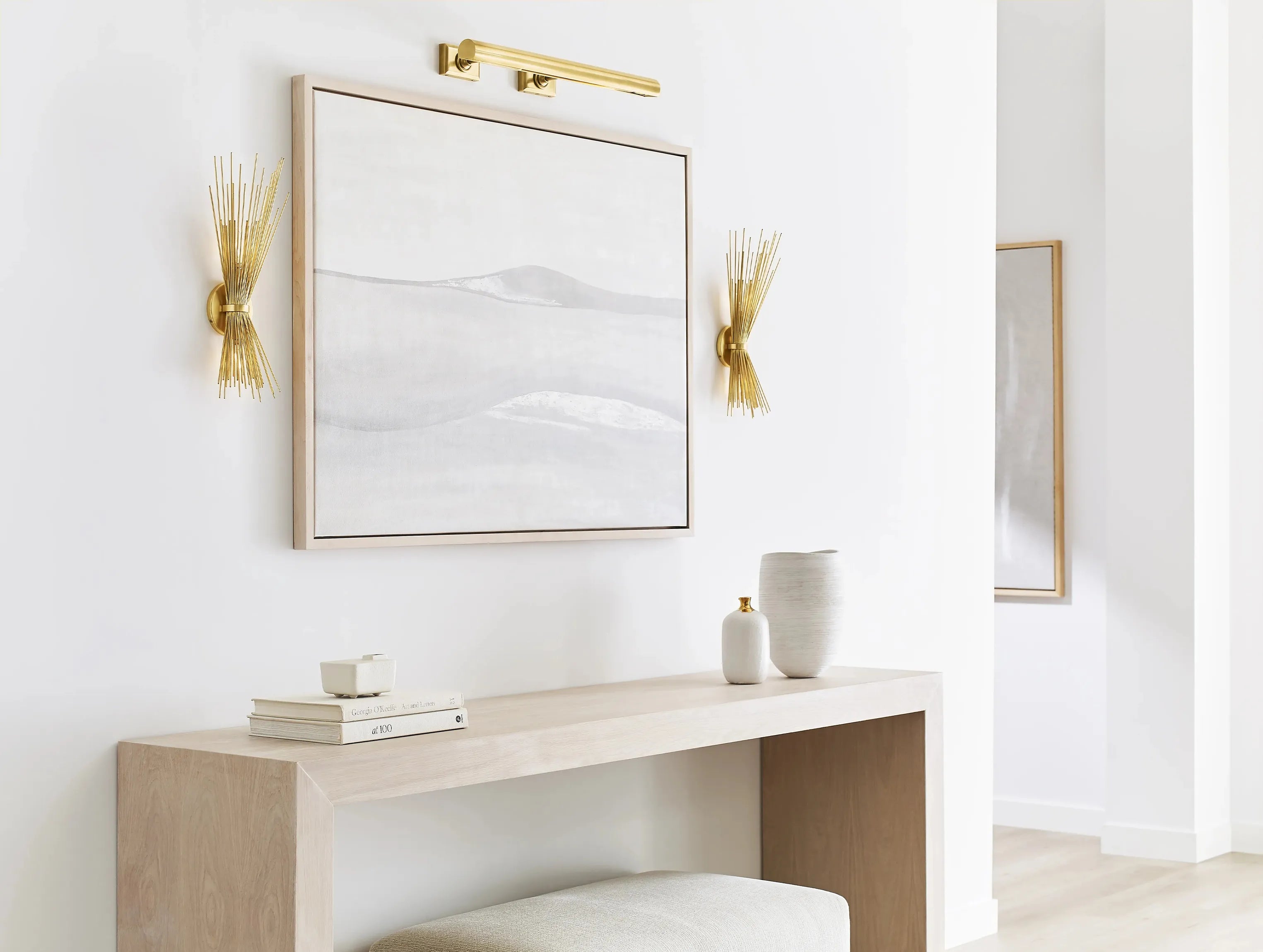 The Orson Picture Light brings timeless elegance to modern interiors, featuring a classic silhouette with refined decorative accents. Its streamlined form incorporates energy-efficient lighting for practical performance while preserving vintage charm. Offered in four finishes, it seamlessly complements artwork and décor alike—making it a sophisticated choice for any well-curated space.