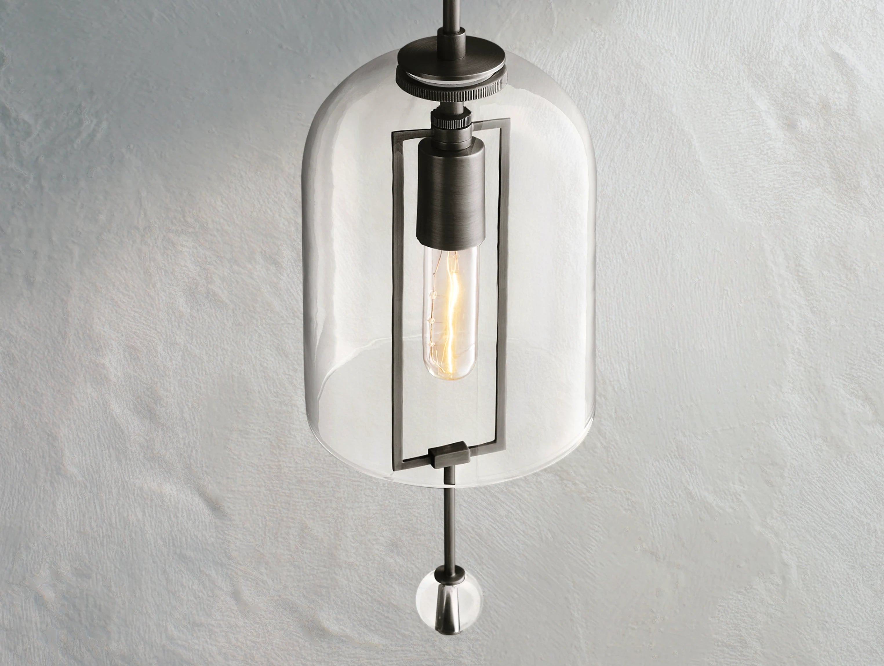 The Pivot Sconce blends art and function, featuring a thick, hand-blown glass shade framed in solid brass. Each piece showcases the artisan’s touch with subtle bubbles or slight asymmetry, making it one of a kind. Certified for wet locations, this sconce is ideal for both indoor and outdoor use, from hallways and bathrooms to covered patios or exposed exterior walls.