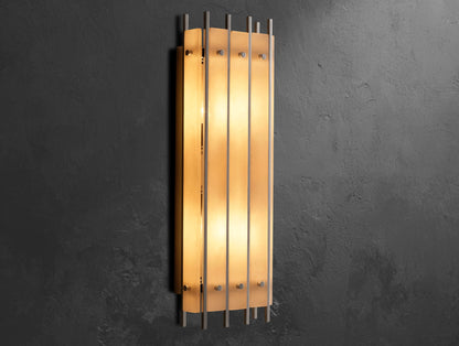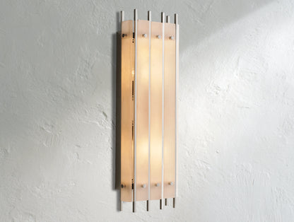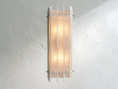 The Royce grand rectangular sconce reimagines the glamour of 1960s Italian glass lighting in a bold, architectural form. Dozens of handmade fluted glass panels are set within a sleek steel frame, producing a sculptural texture and a softly diffused glow. Rated for four bulbs and dimmer compatible, this versatile wall fixture can be mounted vertically or horizontally, adding dramatic light and style to any interior.