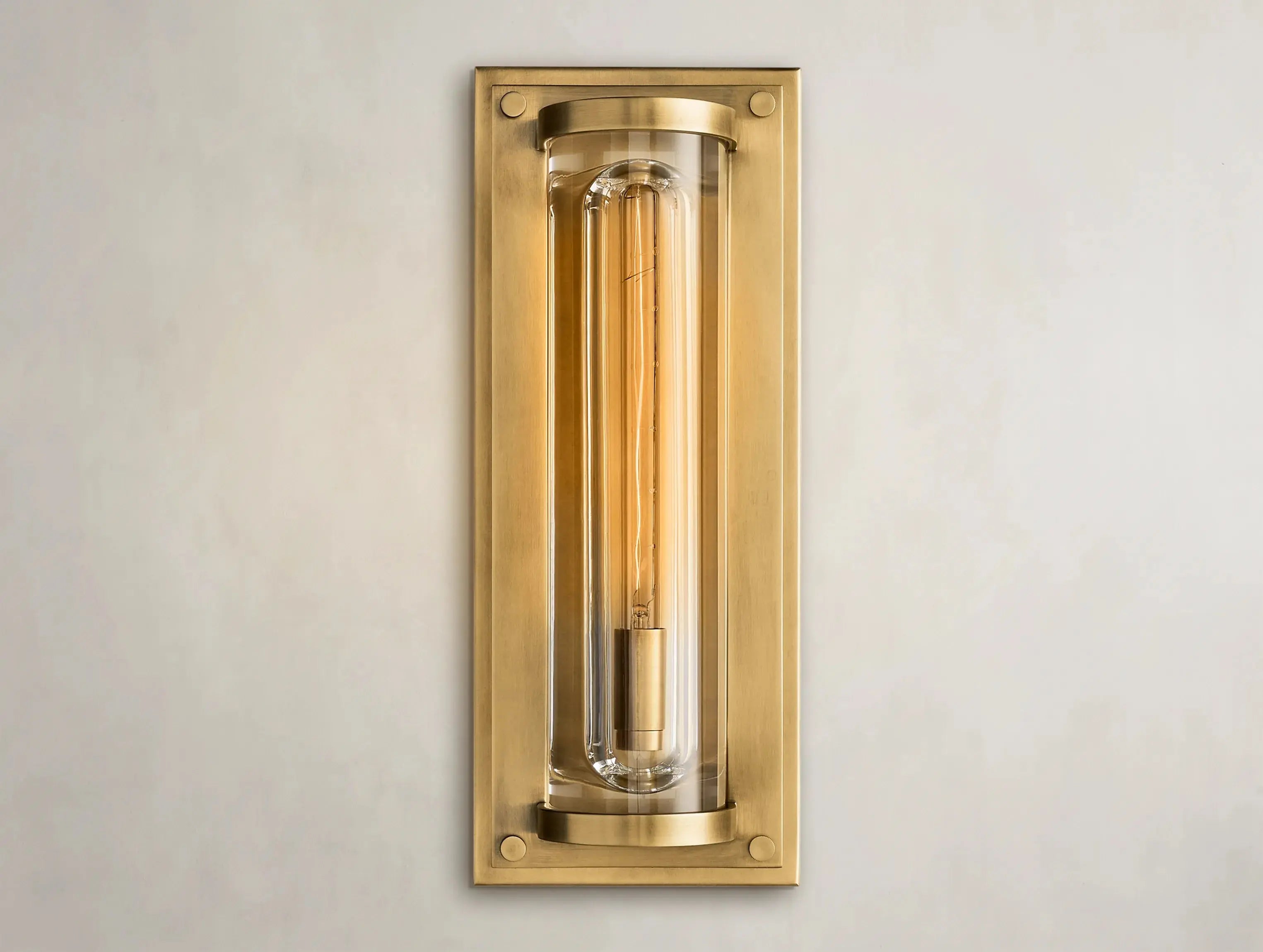 Light meets mass in sculptural tension. The Soiley Grand Round Sconce by Ardenel features a monumental cylinder of K9 optical crystal, precisely carved with a concave channel to cradle a single Edison bulb. Set within a frame of sand-cast brass or aluminum, the fixture creates dramatic contrast between light and void. When lit, the crystal refracts and glows; when dimmed, it seems to dissolve into its surroundings. A statement in restraint and weight.