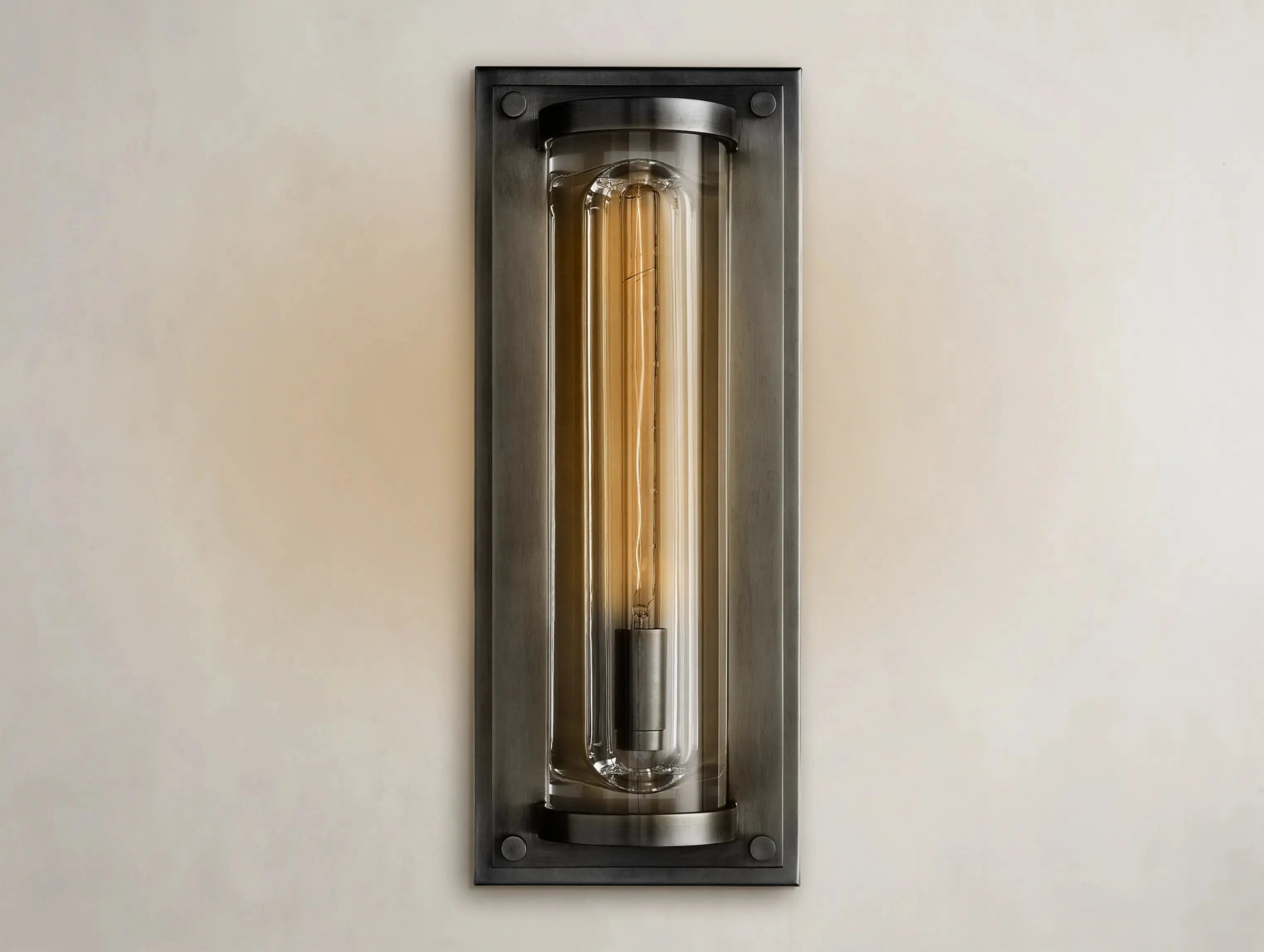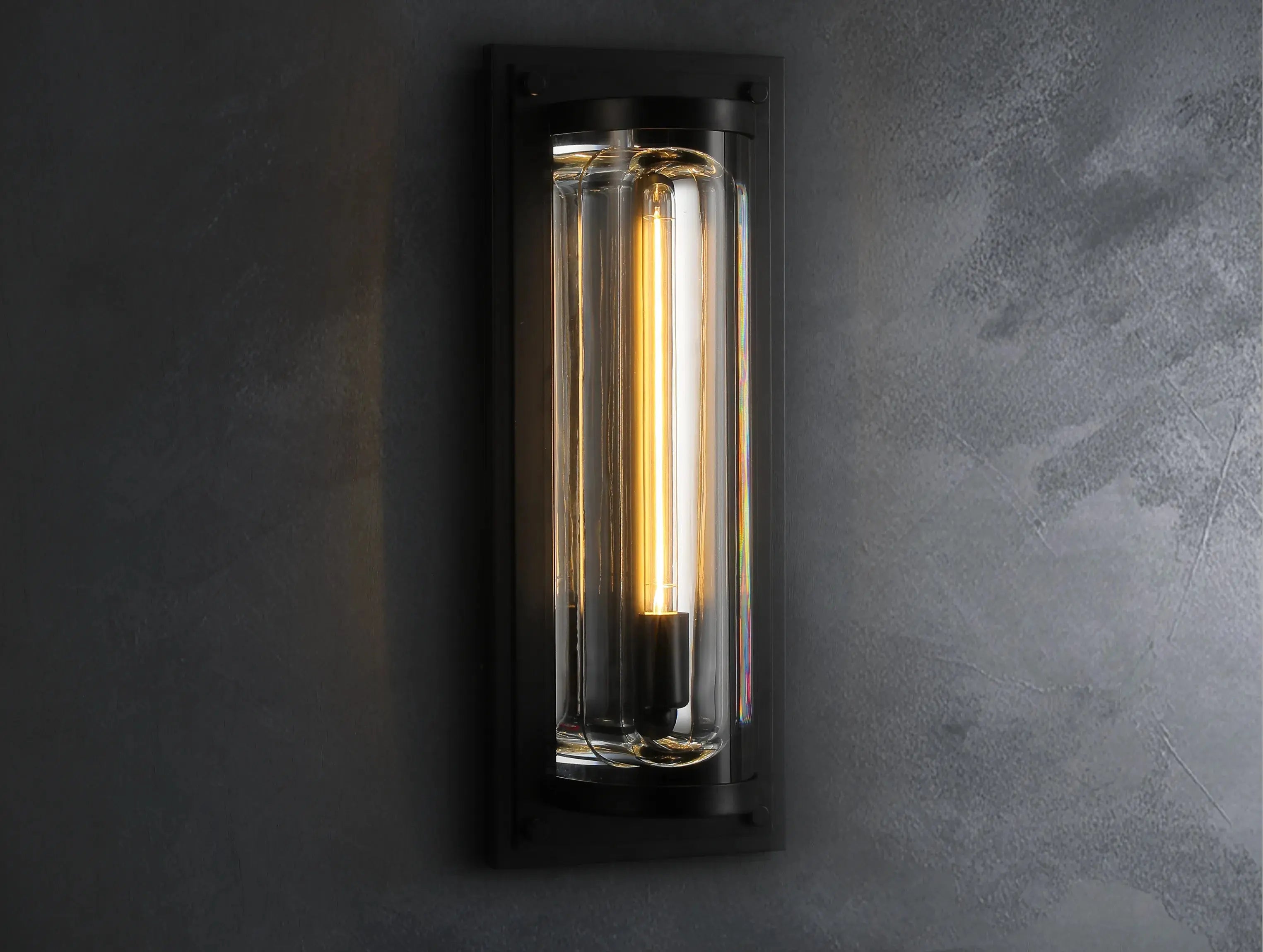 Light meets mass in sculptural tension. The Soiley Grand Round Sconce by Ardenel features a monumental cylinder of K9 optical crystal, precisely carved with a concave channel to cradle a single Edison bulb. Set within a frame of sand-cast brass or aluminum, the fixture creates dramatic contrast between light and void. When lit, the crystal refracts and glows; when dimmed, it seems to dissolve into its surroundings. A statement in restraint and weight.