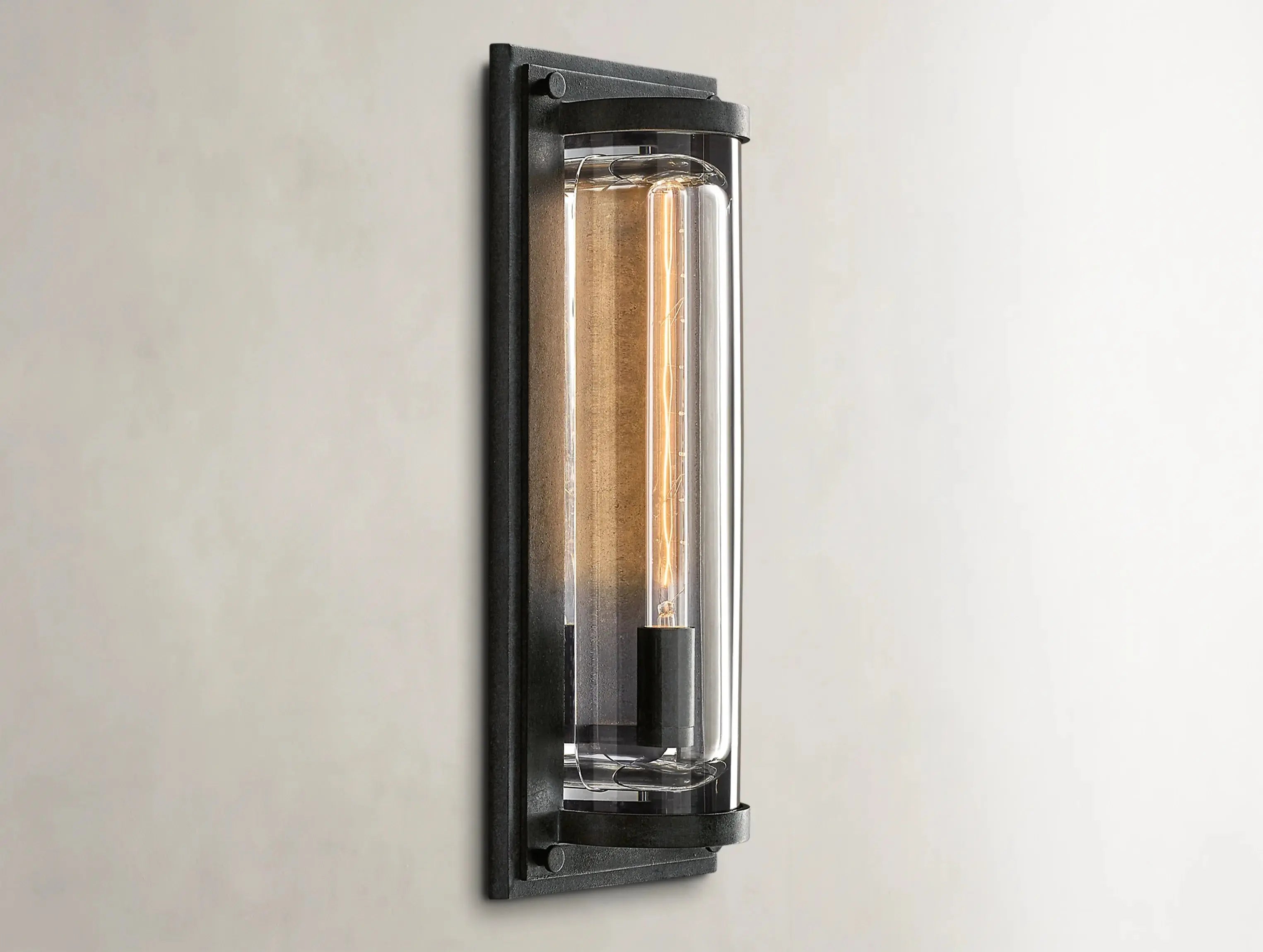 Light meets mass in sculptural tension. The Soiley Grand Round Sconce by Ardenel features a monumental cylinder of K9 optical crystal, precisely carved with a concave channel to cradle a single Edison bulb. Set within a frame of sand-cast brass or aluminum, the fixture creates dramatic contrast between light and void. When lit, the crystal refracts and glows; when dimmed, it seems to dissolve into its surroundings. A statement in restraint and weight.