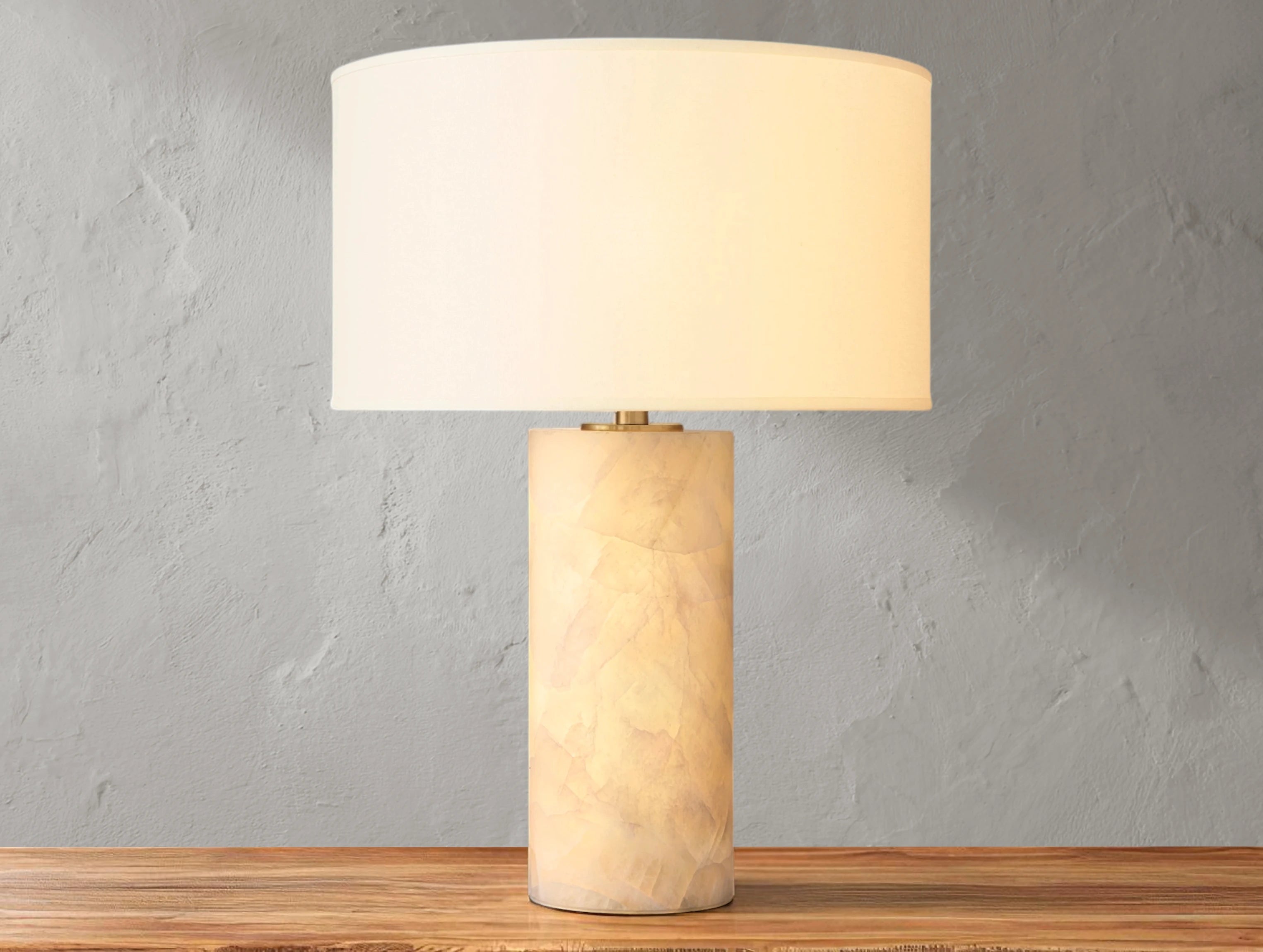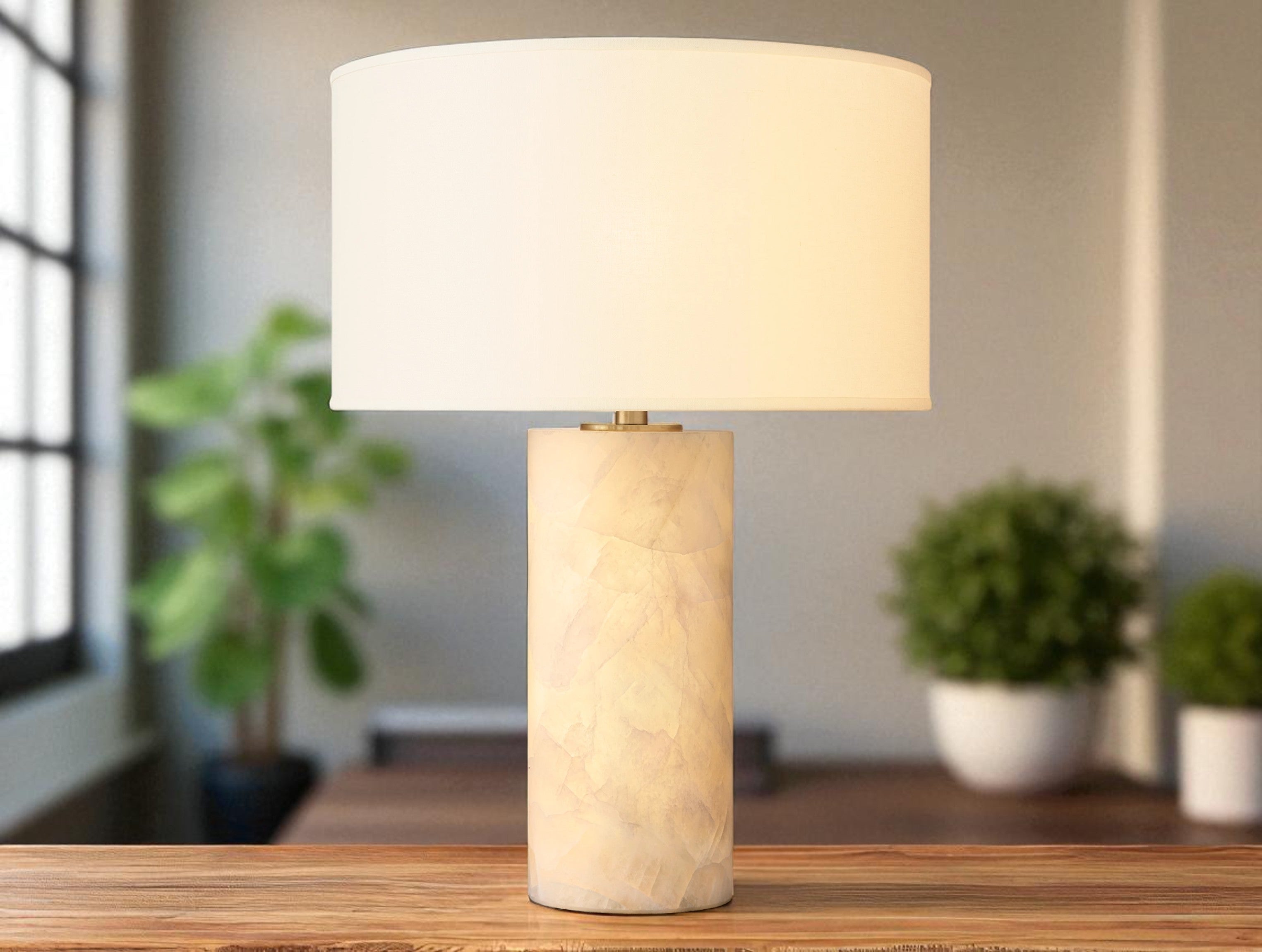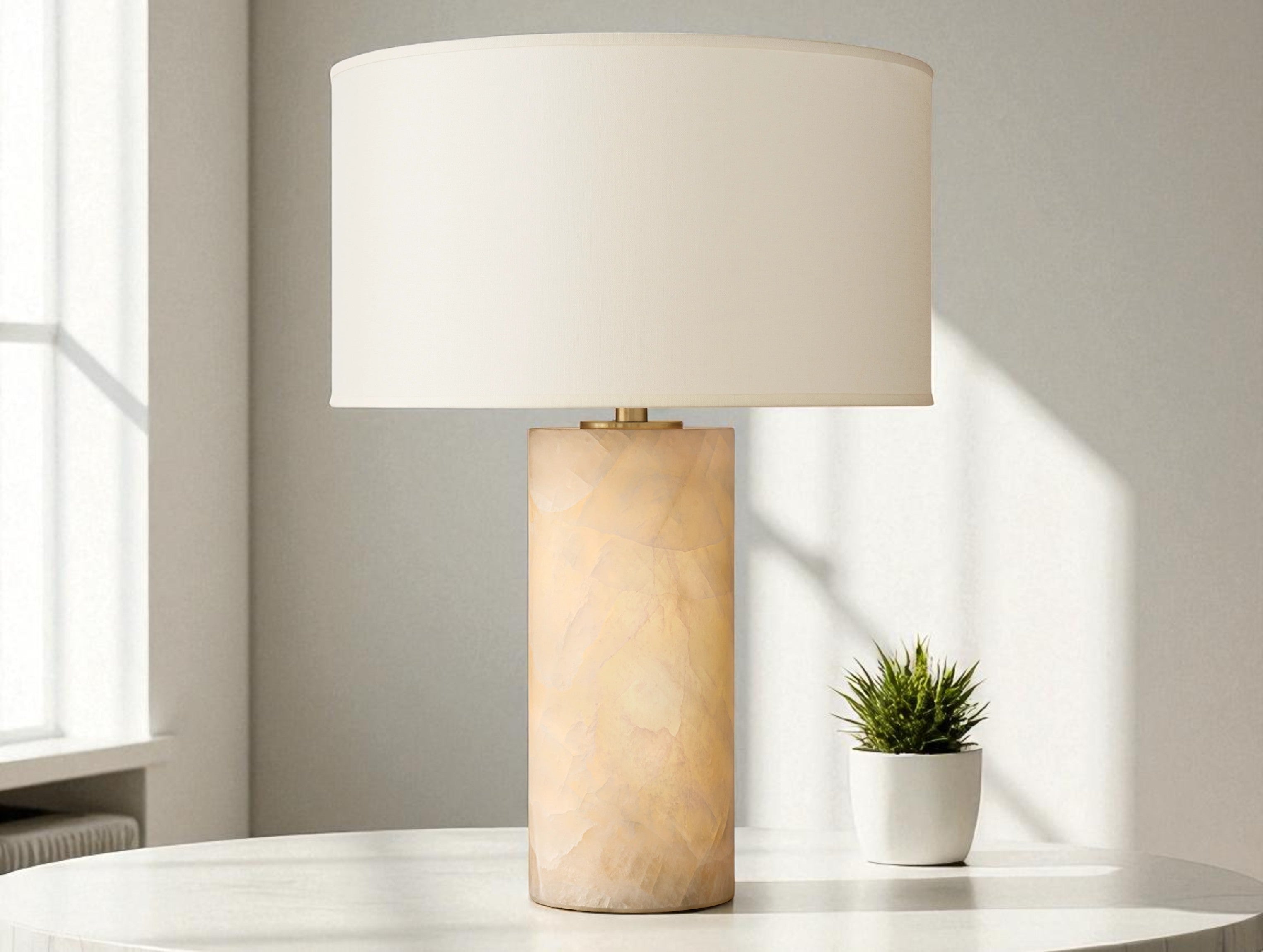 Refined and luminous, the Lisse table lamp highlights the natural beauty of calcite stone. Each base is handcrafted and polished to reveal the stone’s soft glow and unique veining, paired with a steel collar and finial for a sleek finish. Designed with three lighting modes—top only, base only, or both—it brings versatility and elegance to any room. Every lamp is one of a kind, making it both functional and a statement piece.