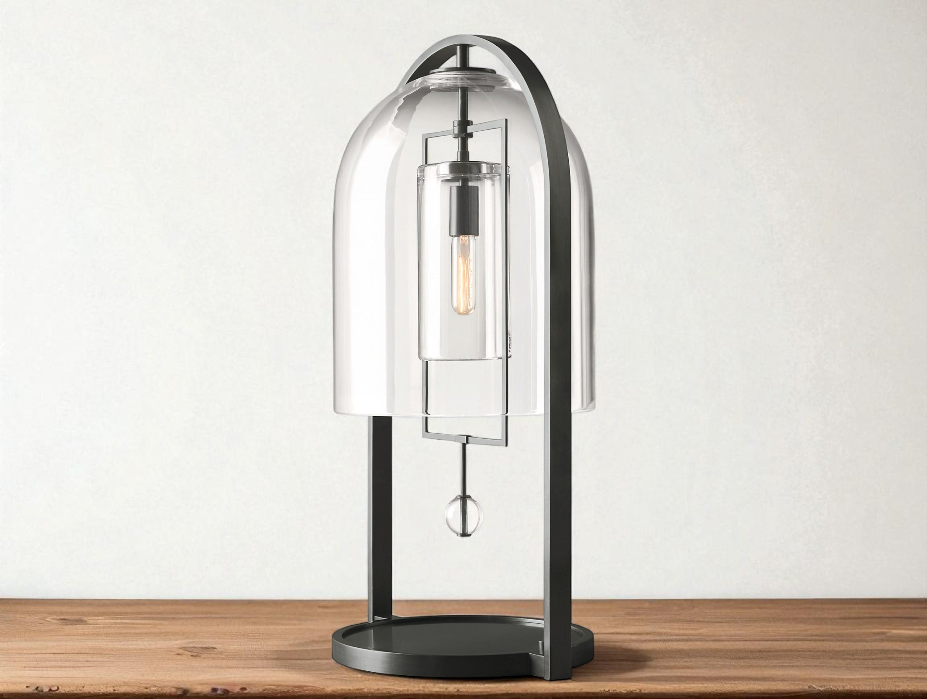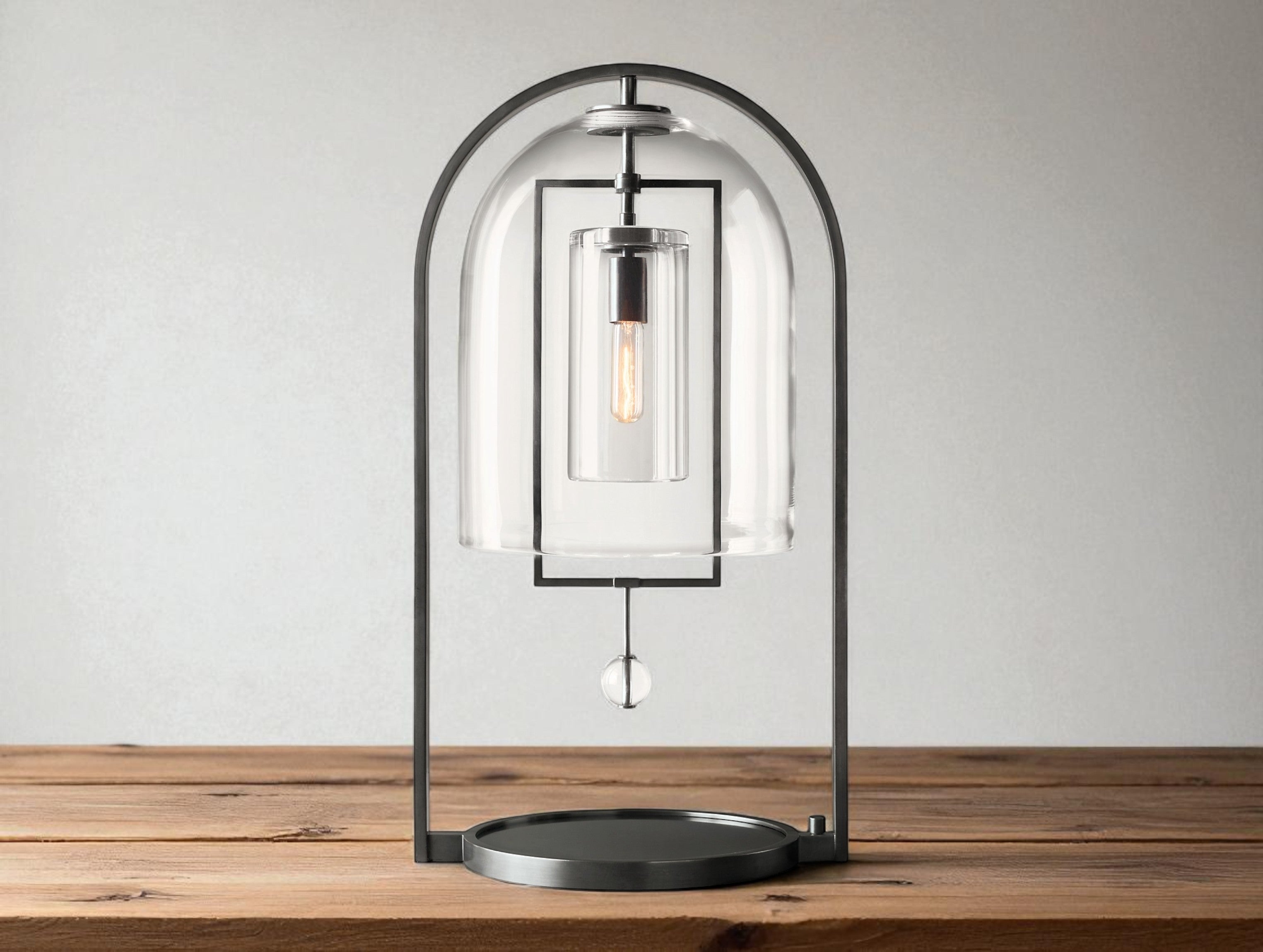 The Pivot Table Lamp merges balance and artistry with a sculptural form of solid brass and artisan-blown glass. Each glass shade, ¼" thick, may show subtle bubbles or slight asymmetry—unique hallmarks of handcraftsmanship. Available in two sizes, this lamp adds elegance to desks, nightstands, or living spaces with its warm, diffused glow.